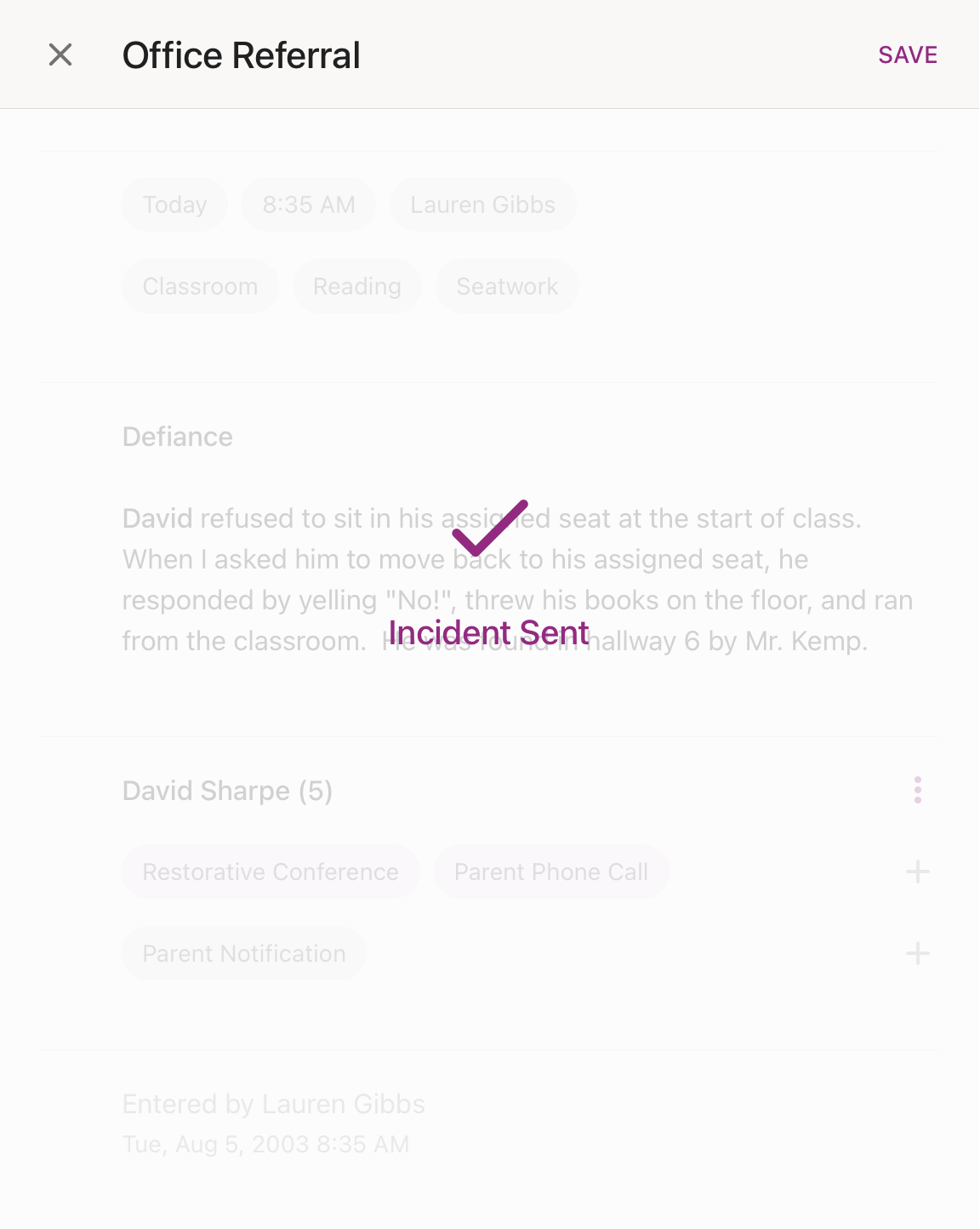 Incidents + breaks the endless cycle of paperwork so you can focus on making the best decisions for your students at a time when those decisions matter more than ever. Every step of the referral process has been carefully reconsidered to deliver a super-efficient reporting system that dramatically reduces the time you spend responding to student conduct issues.