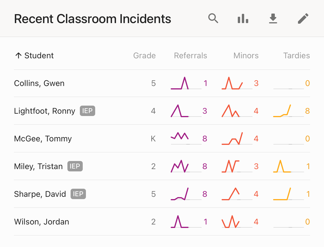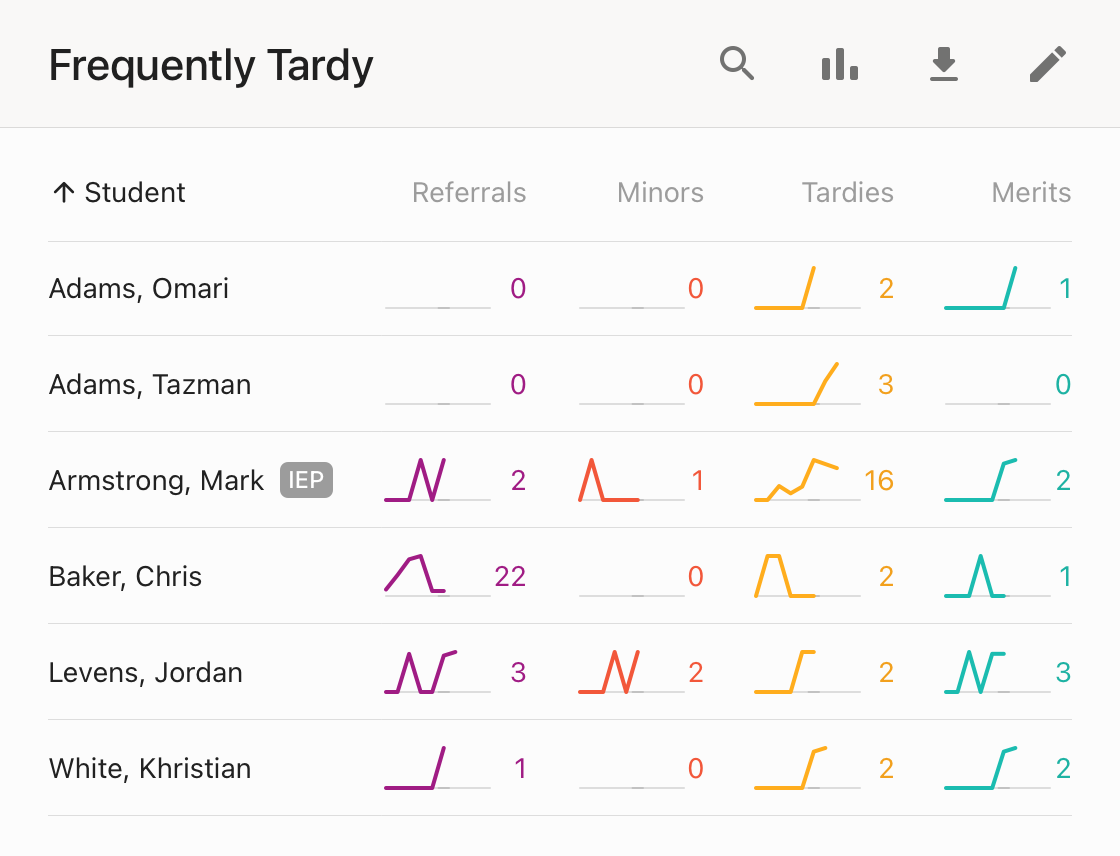 Student conduct is bigger than office referrals. Incidents + gives you a more complete understanding of student conduct on your campus. Extend your view of student behavior into the classroom with minor incidents , minimize disruption from late-arriving students with tardies , recognize positive student behavior with merits , and capture a more comprehensive picture of your students and campus with custom incidents .